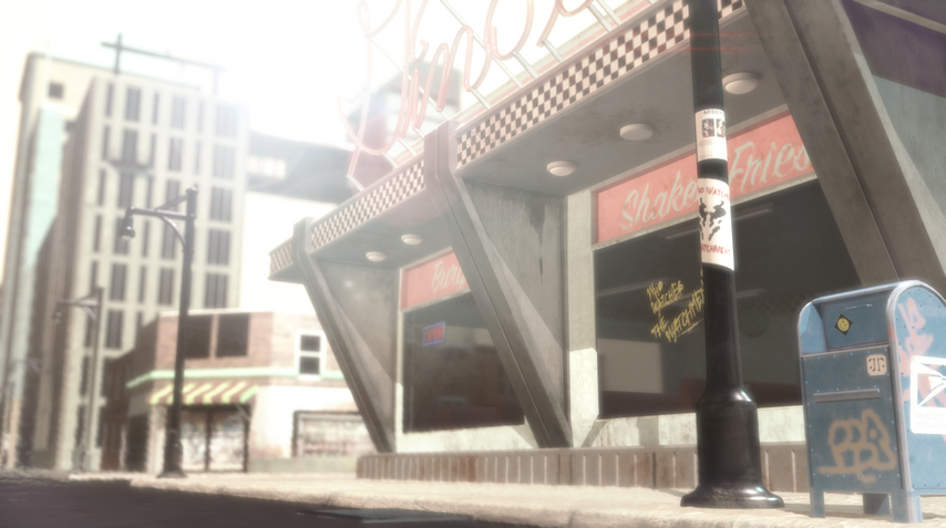 This environment was also heavily influenced by summer in NYC. A couple summers ago I tried to walk to Junior's Diner in Brooklyn, but the trek there was nothing short of brutal. I tried to capture that oppressive heat here. I also thought it was a good juxtaposition to the nighttime version, which features a heavy rain.